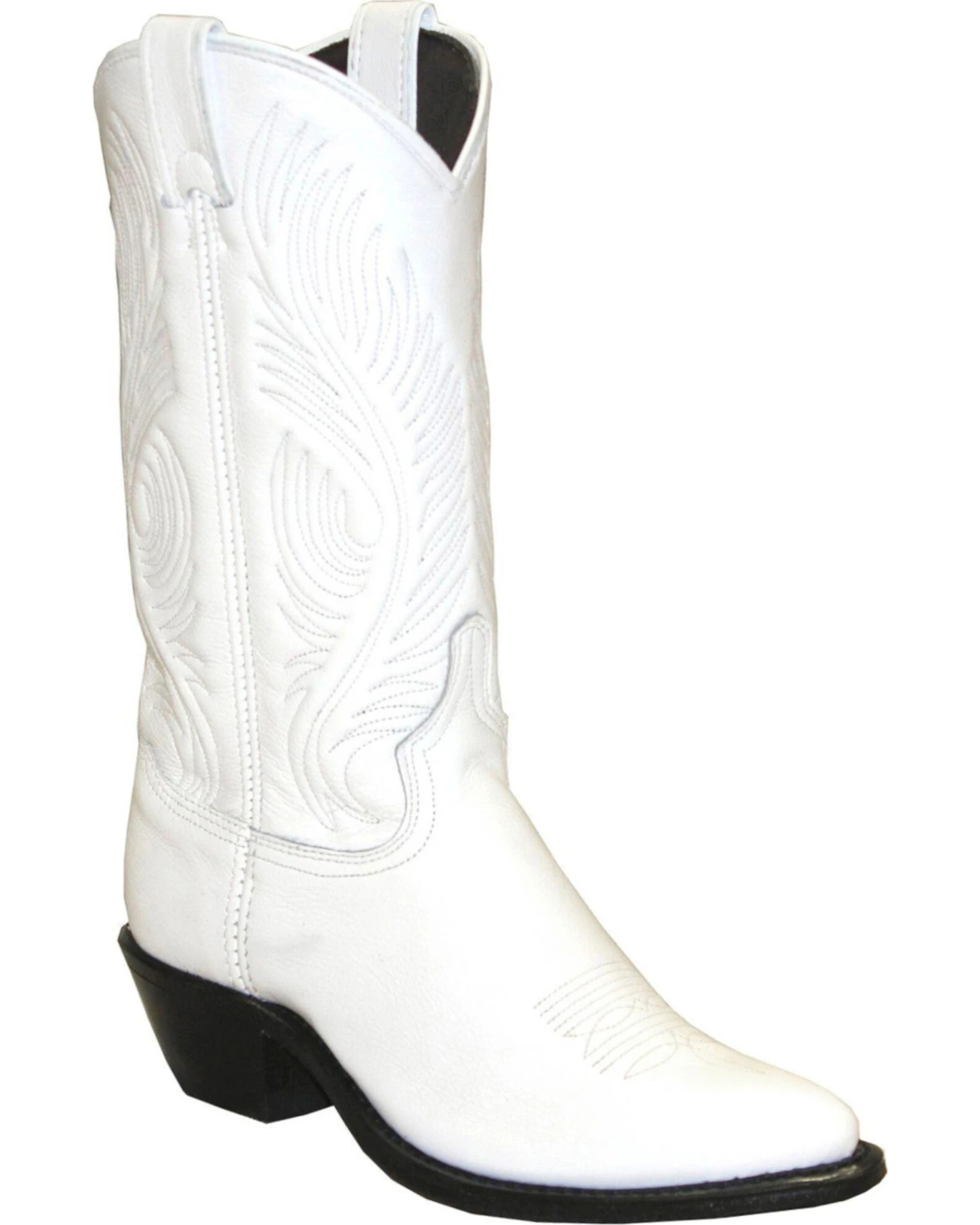 - Solid white with western stitching