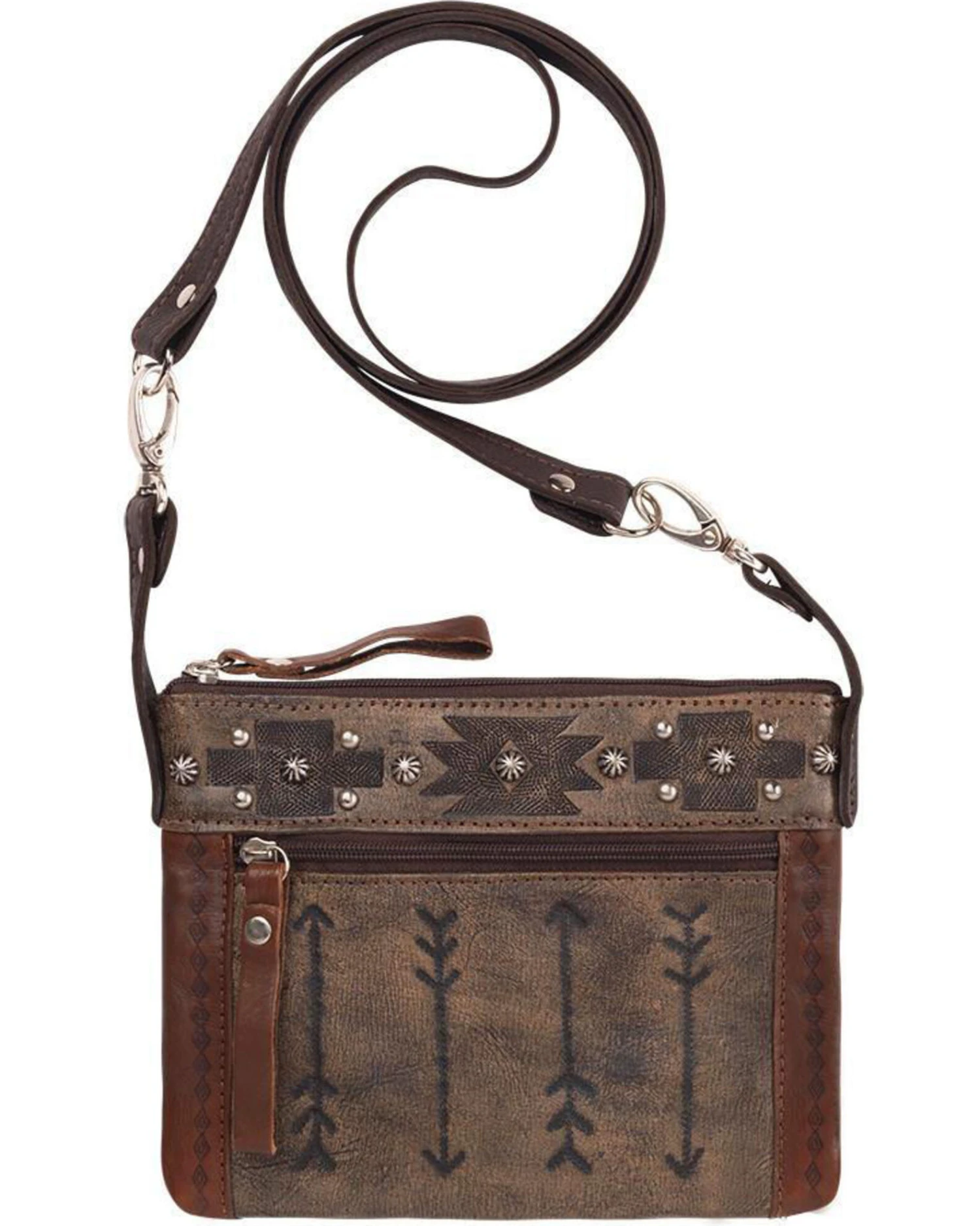 American West Women’s Brown Southwestern Arrow Trail Rider Crossbody Bag