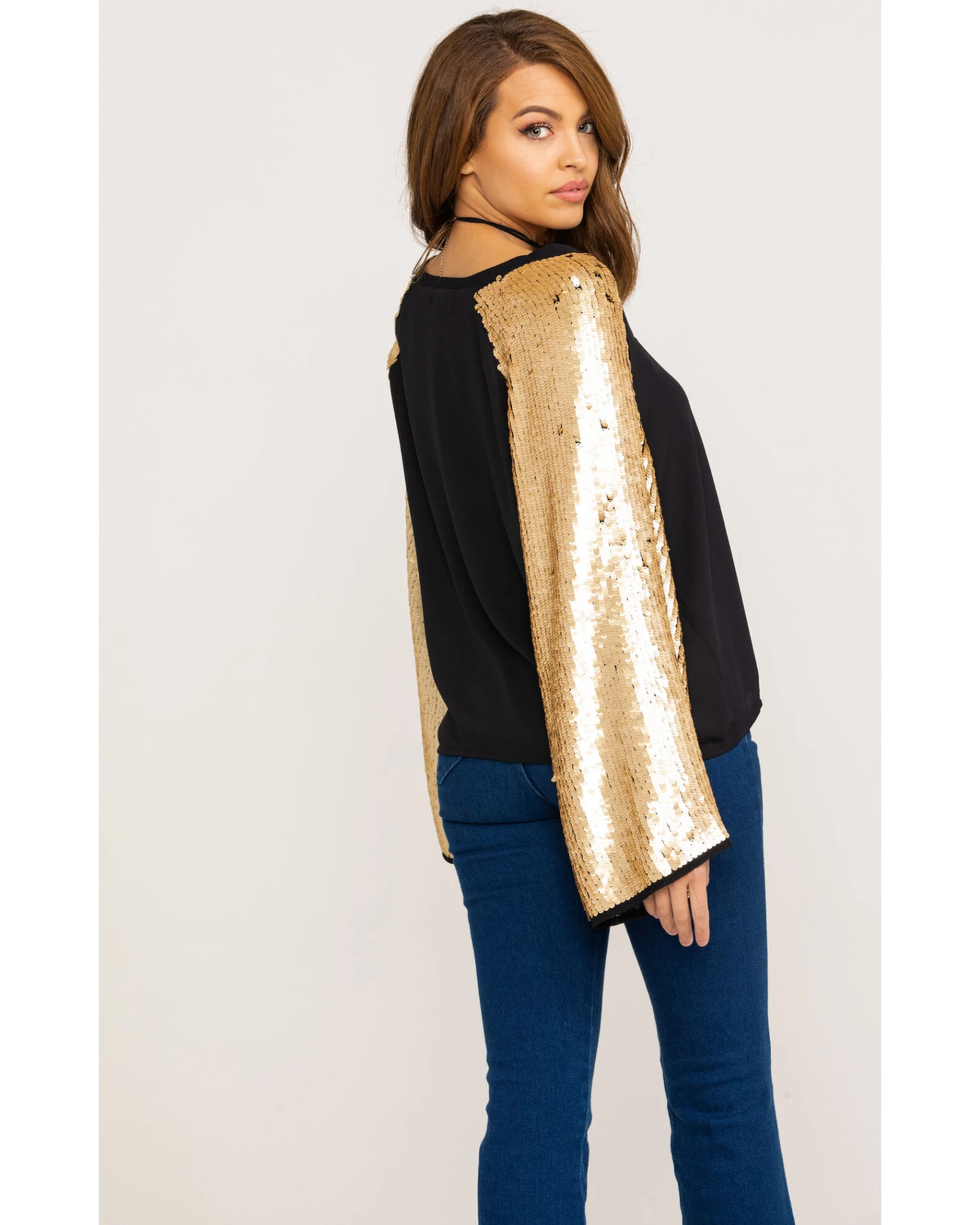 - Sequin chiffon bell sleeves