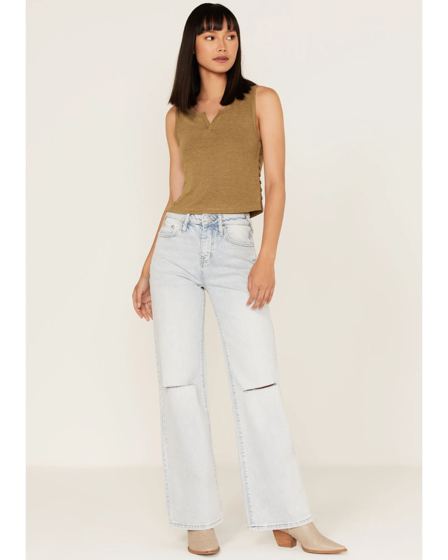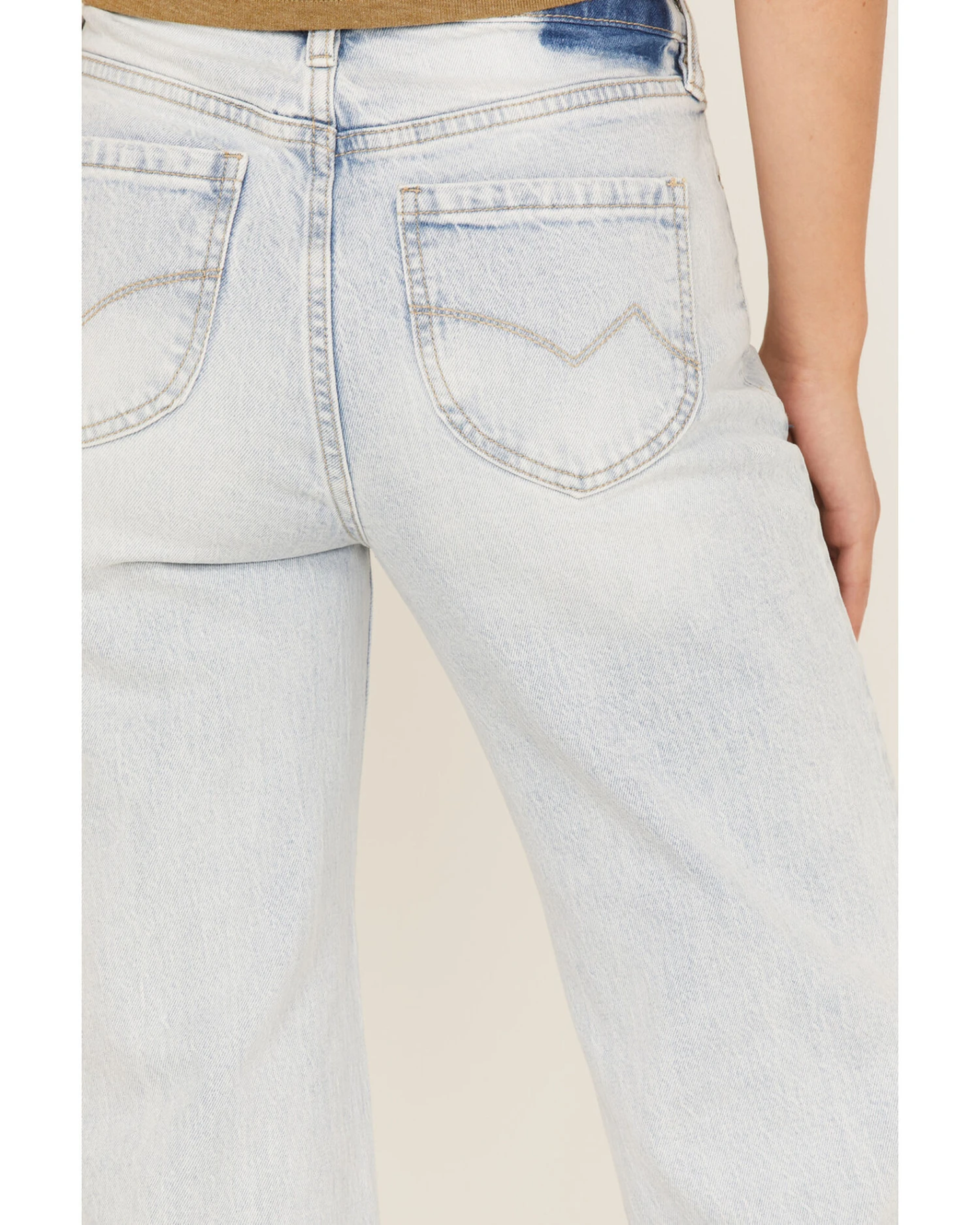 Cleo + Wolf Women’s Light Wash High Rise Distressed Knee Flare Jeans