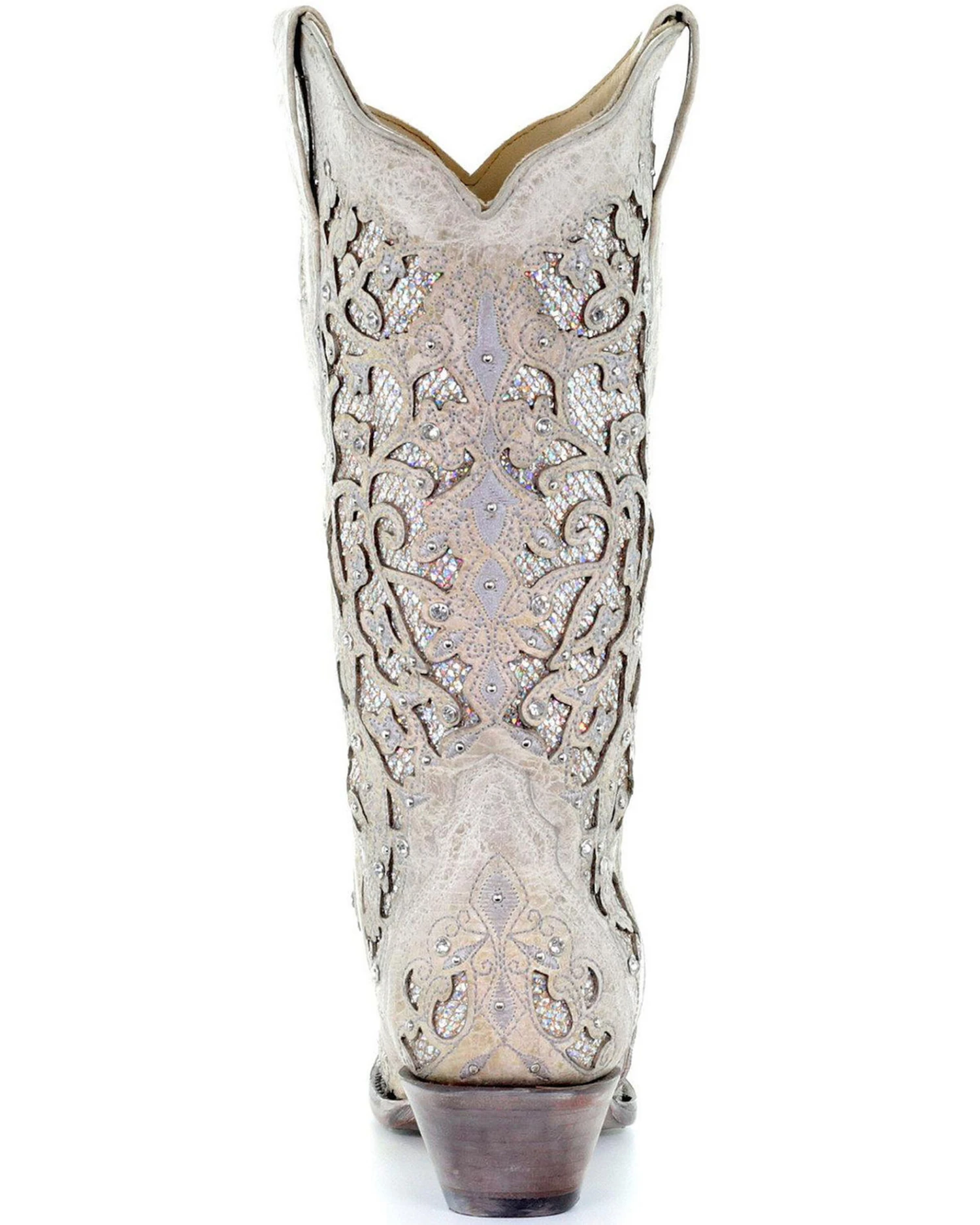 Corral Women’s Glitter Inlay And Crystals Wedding Boots – Snip Toe