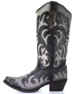 Corral Women’s Gray Fur Overlay Western Boots – Snip Toe