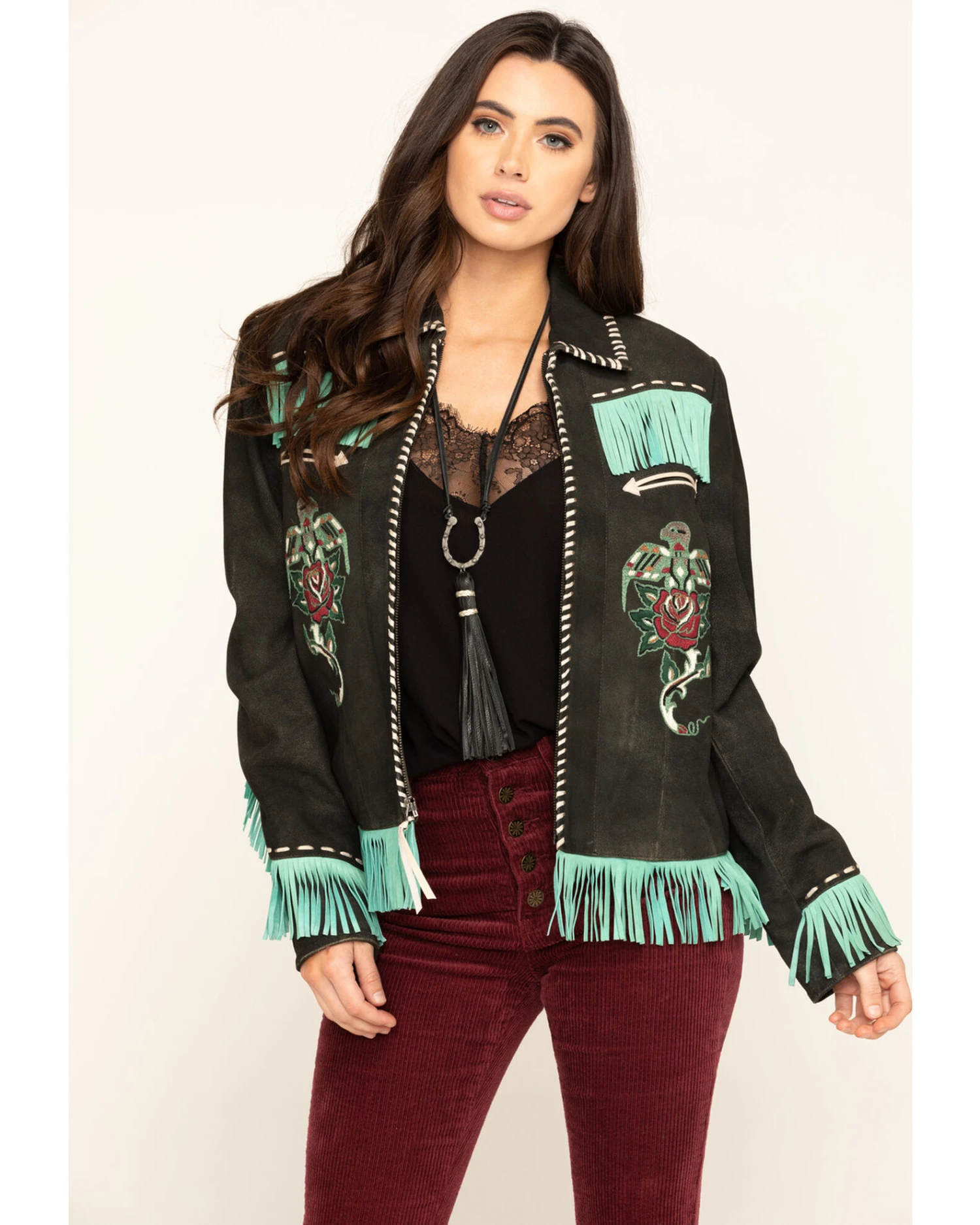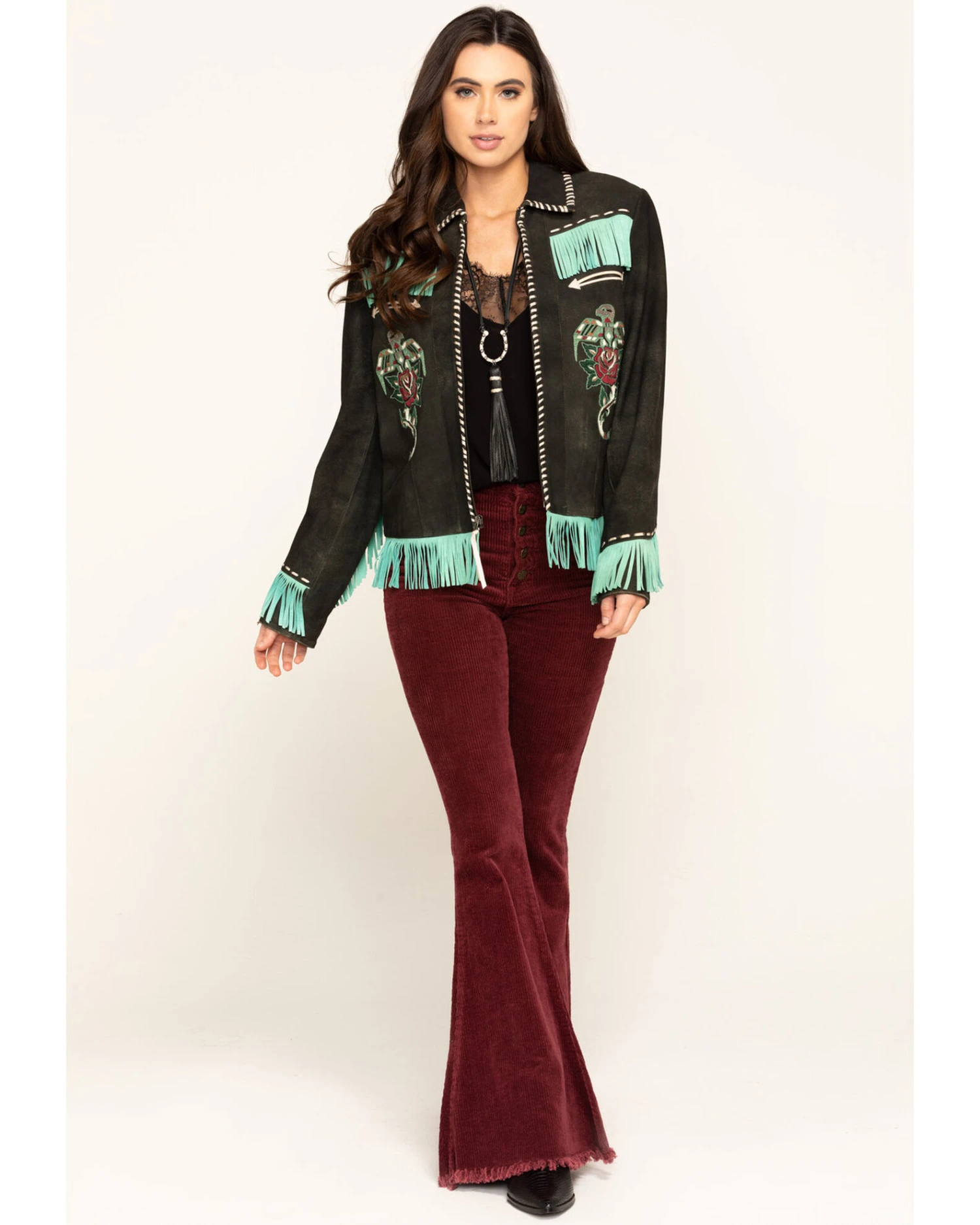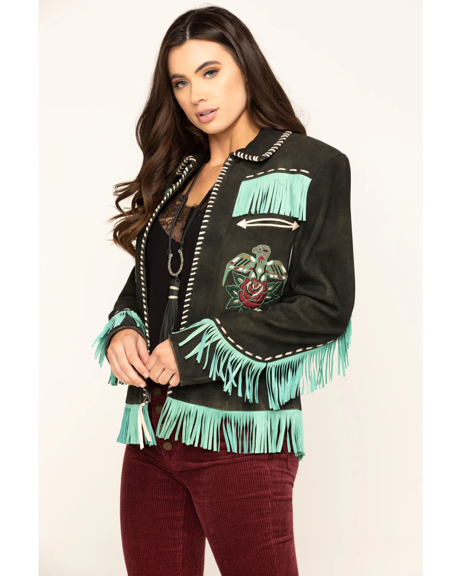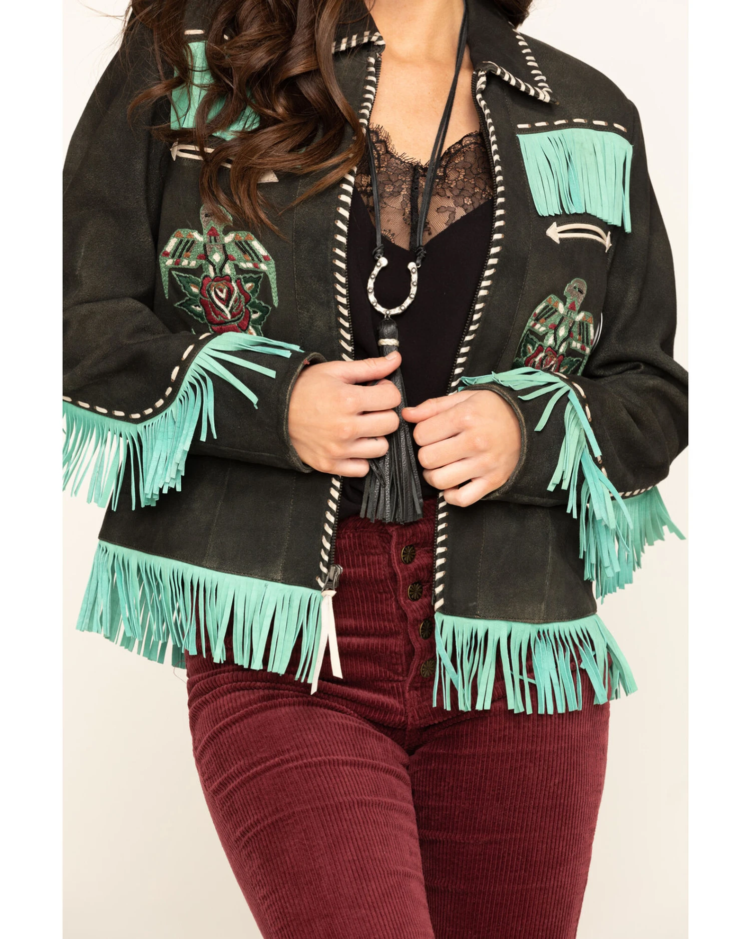 - Fringe trim along yokes, bottom hem, and cuffs