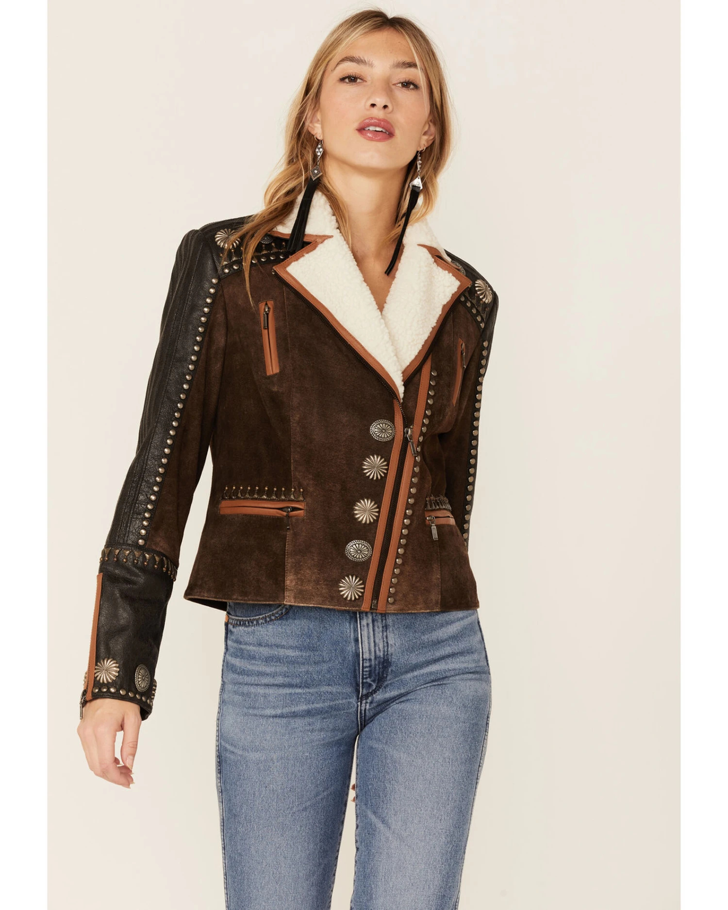 Double D Ranchwear Women’s Sherpa Trim Leather Cave Basin Jacket