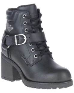 Harley Davidson Women’s Howell Harness Lace-Up Waterproof Leather Moto Boots – Round Toe