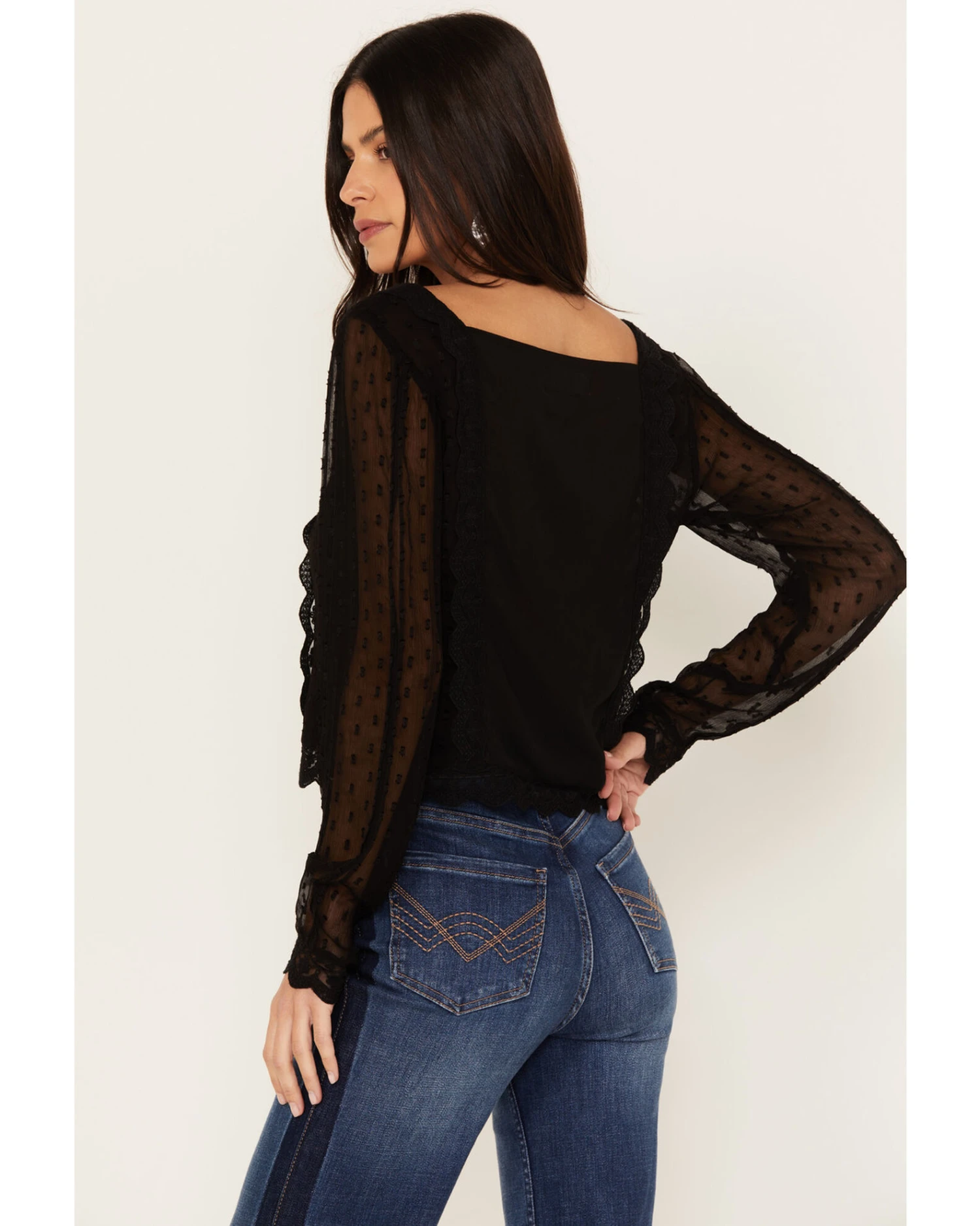 - Long sheer sleeves