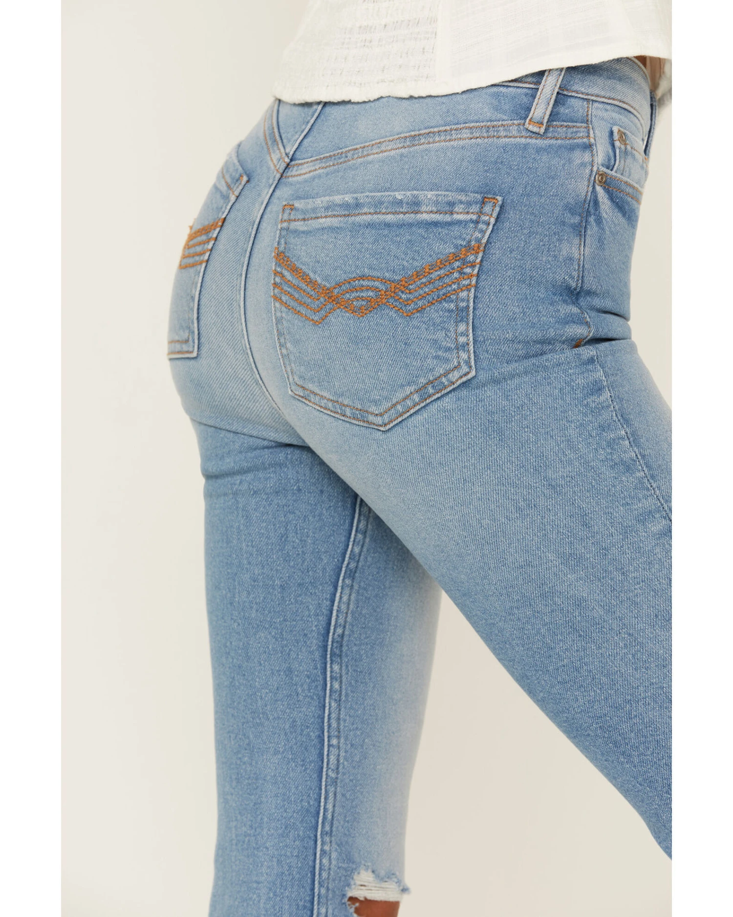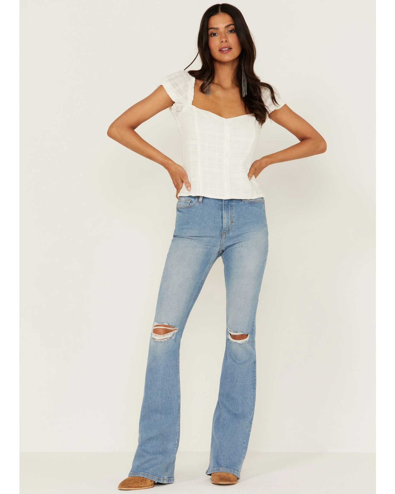 Idyllwind Women’s High Risin’ Roadtrip Wash Stretch Distressed Knee Flare Jeans