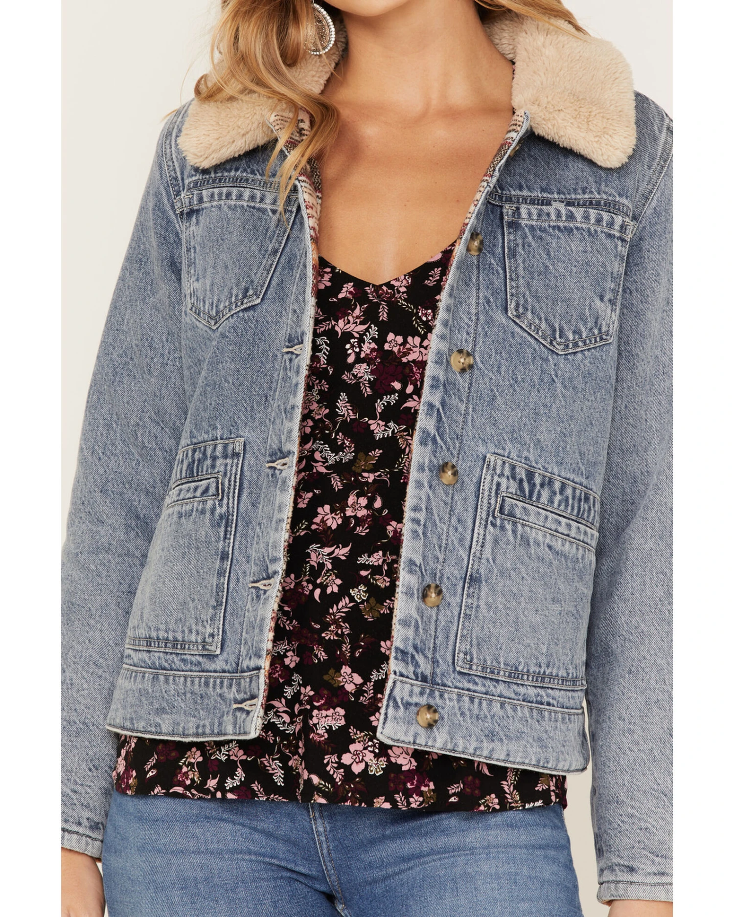 Idyllwind Women’s Light Wash Reversible Sherpa Blanket Denim Jacket