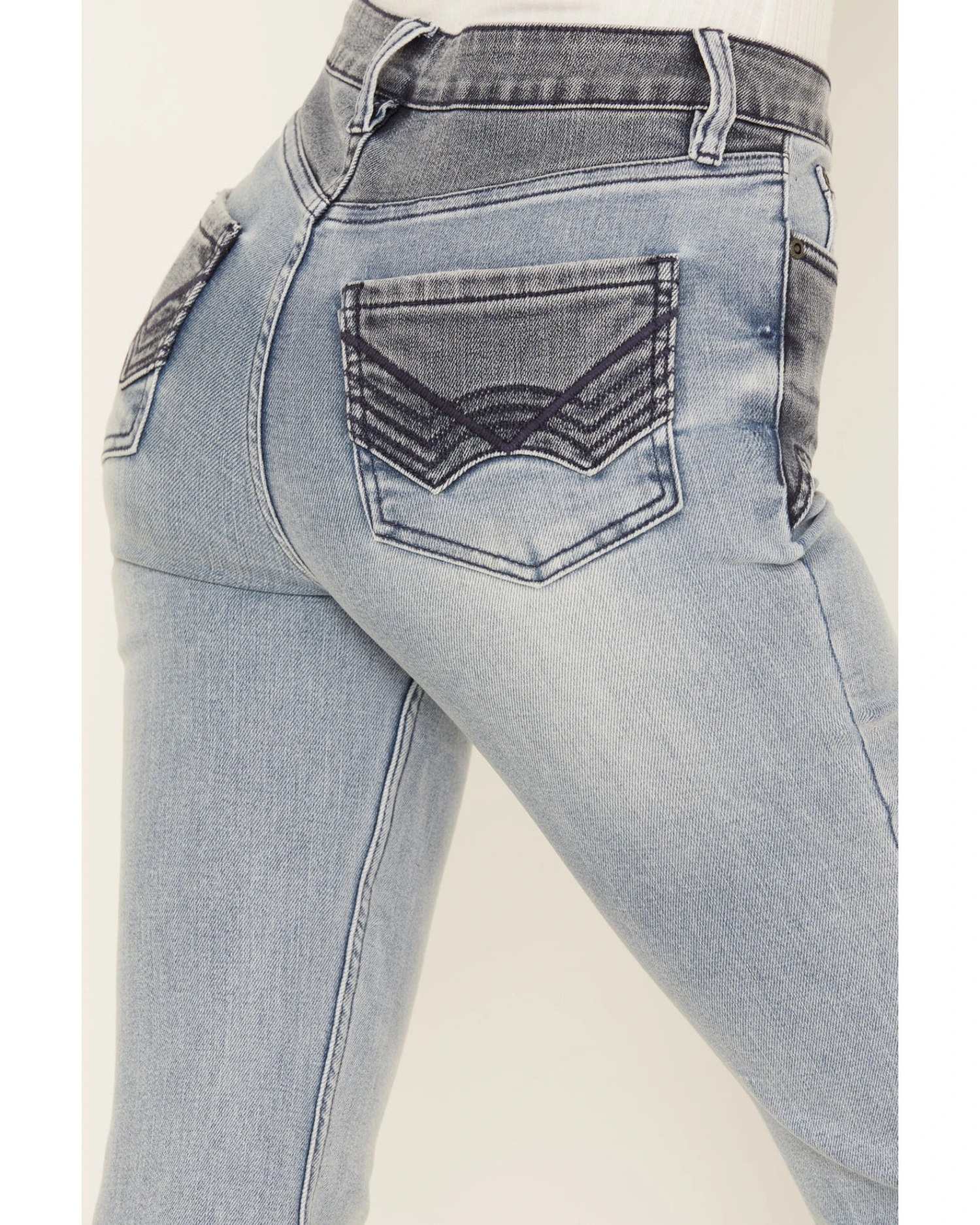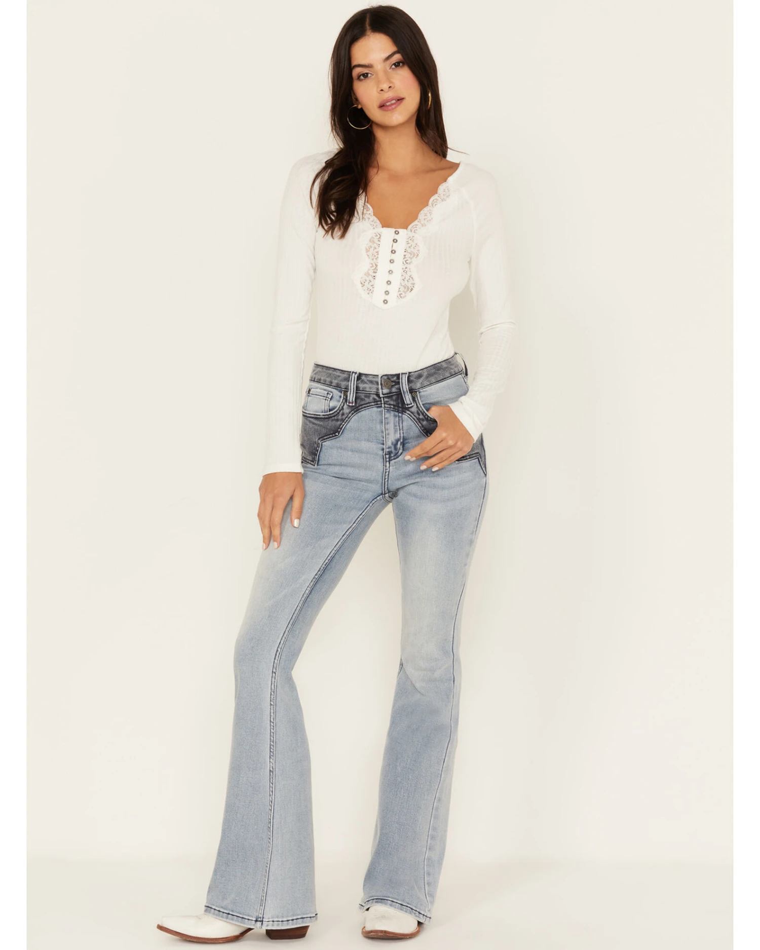 Idyllwind Women’s Loma Light Wash Contrast Wash High Risin’ Stretch Flare Jeans