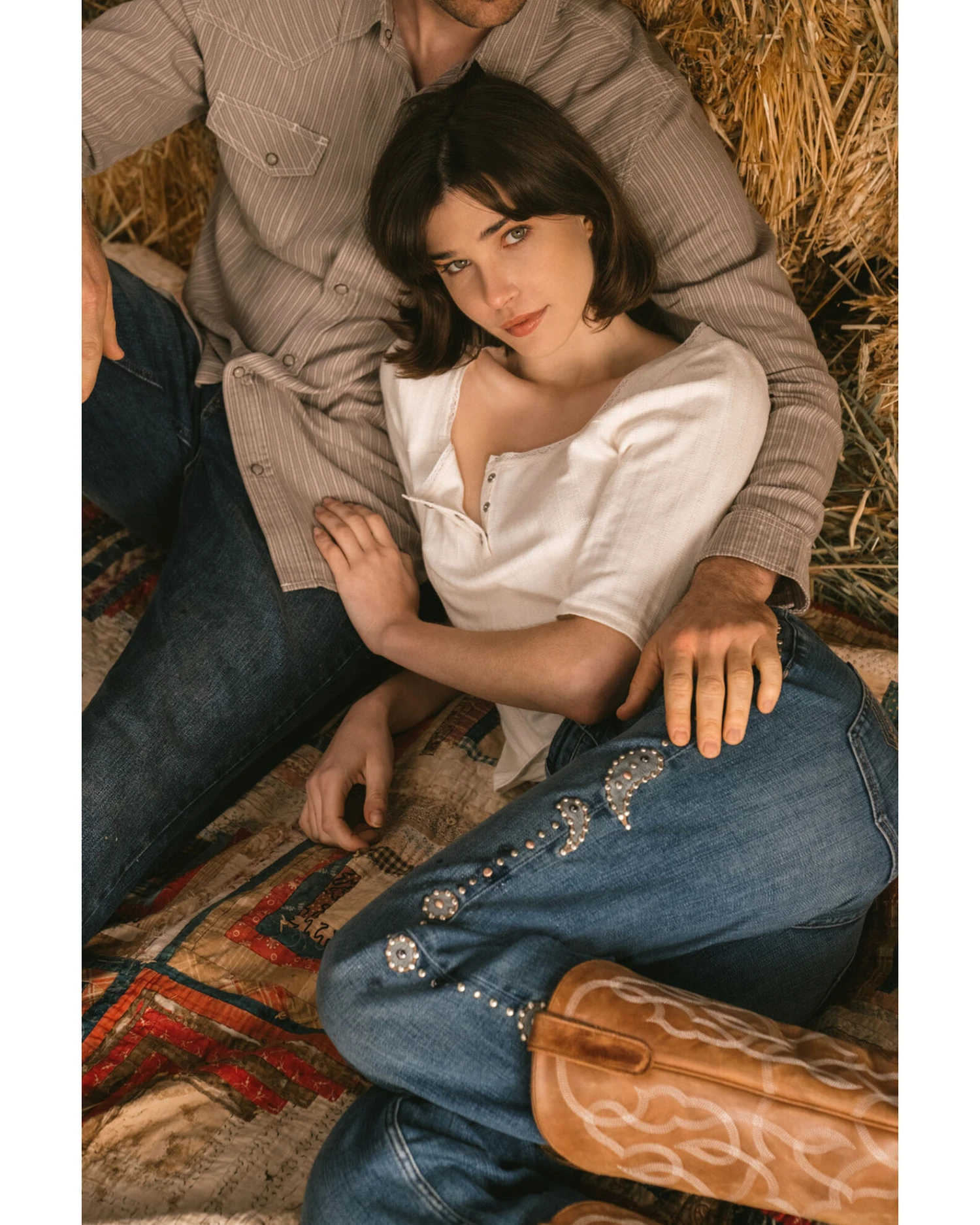 Idyllwind Women’s Onslow Medium Wash Gypsy High Rise Embellished Stretch Flare Jeans