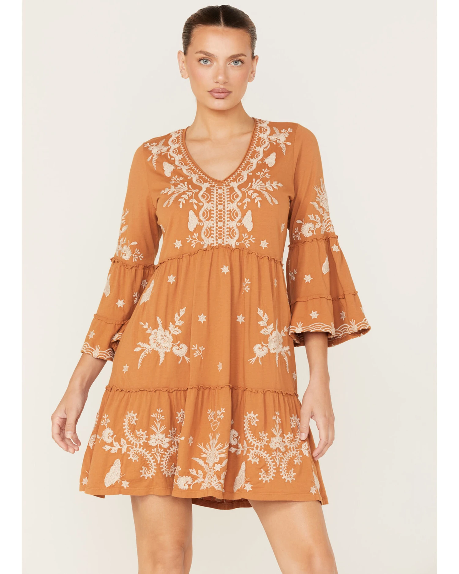 Johnny Was Women’s Arzella Floral Embroidered Knit Easy Tiered Dress
