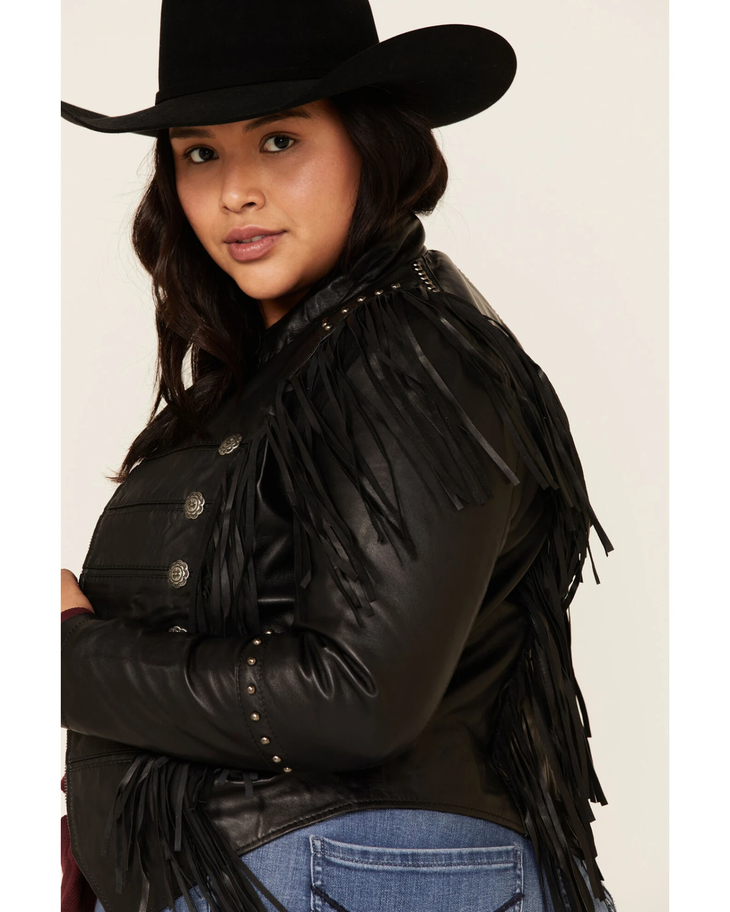 Liberty Wear Women’s Black Fringe Snap Sheep Napa Jacket – Plus