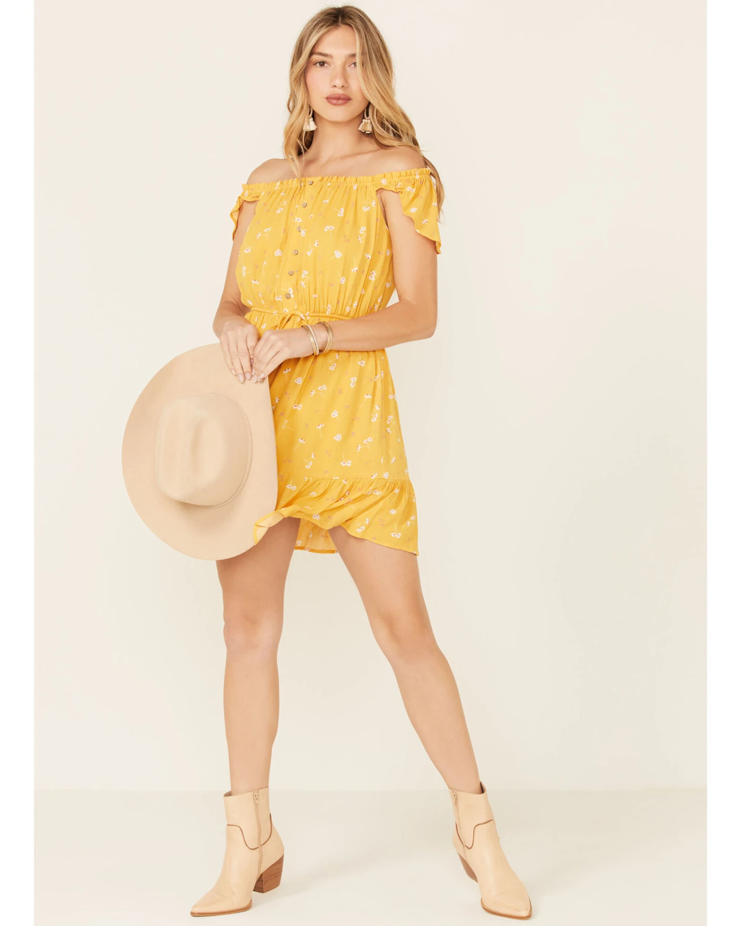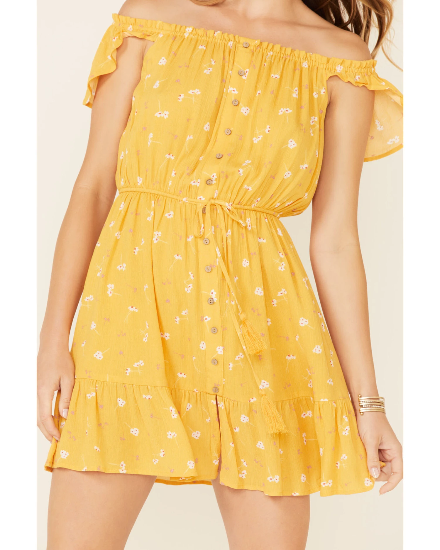 Miss Me Women’s Floral Button Front Off-Shoulder Dress