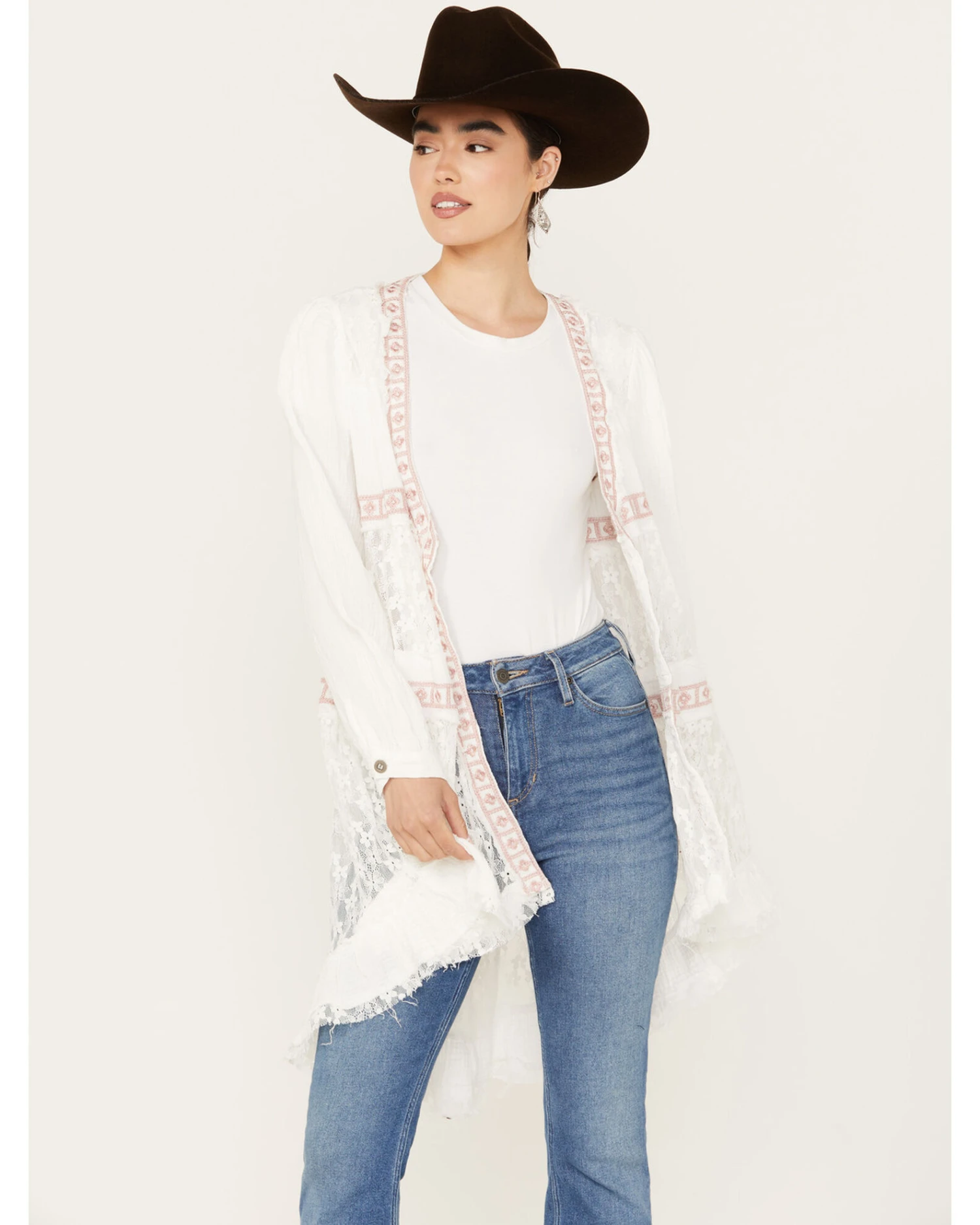 POL Women’s Tiered Ditsy Print Long Sleeve Kimono