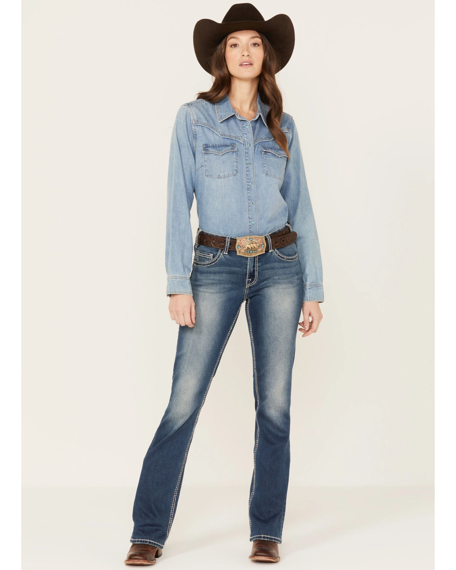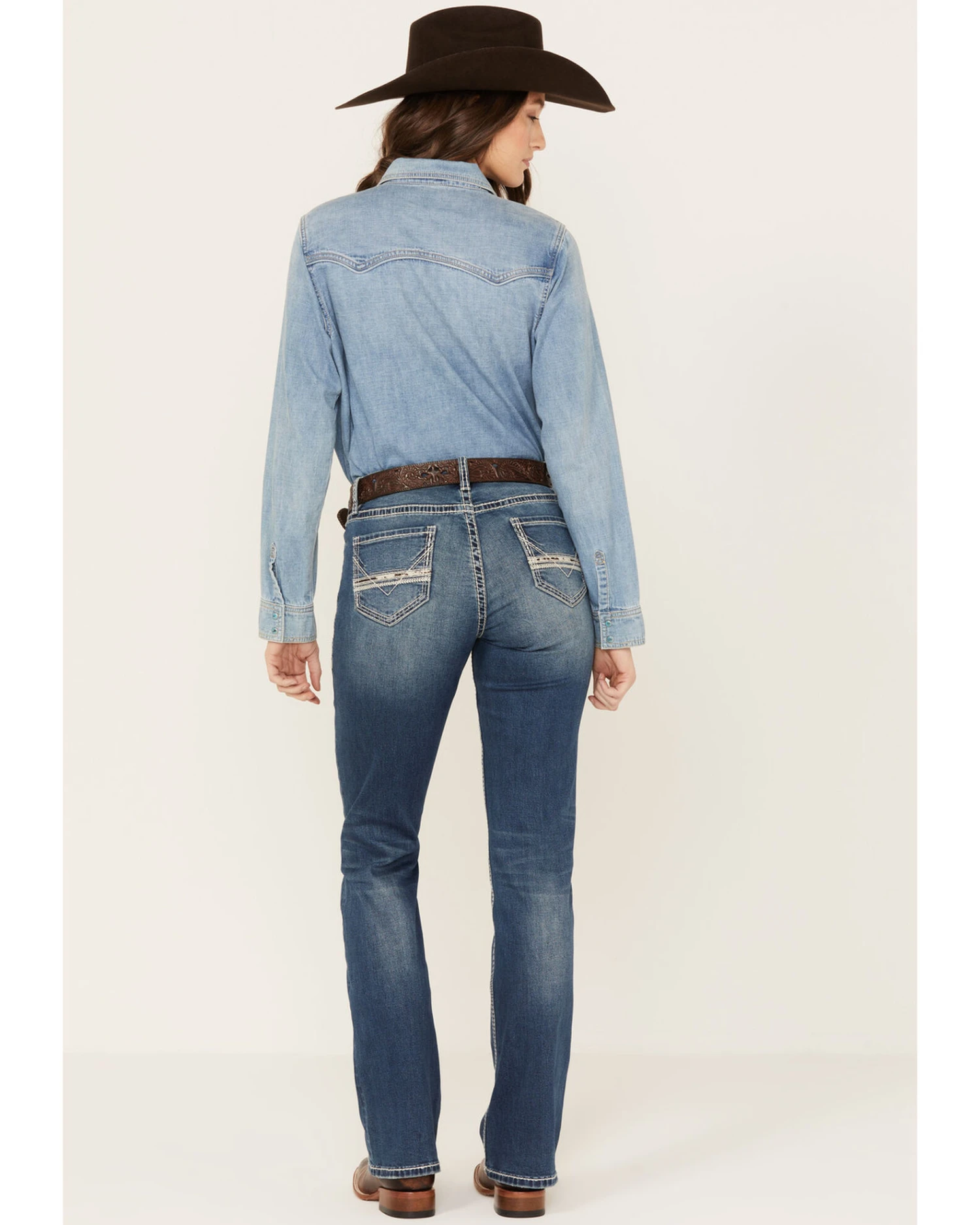 Rock & Roll Denim Women’s Medium Wash Mid Rise Extra Stretch Riding Bootcut Jeans