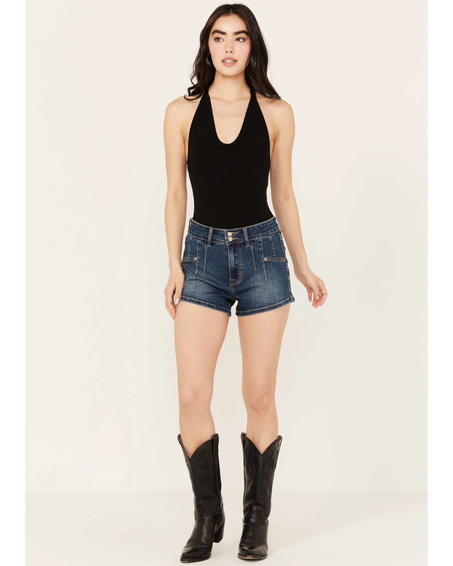 Rock & Roll Denim Women’s Medium Wash Mid Rise Extra Stretch Seam Shorts