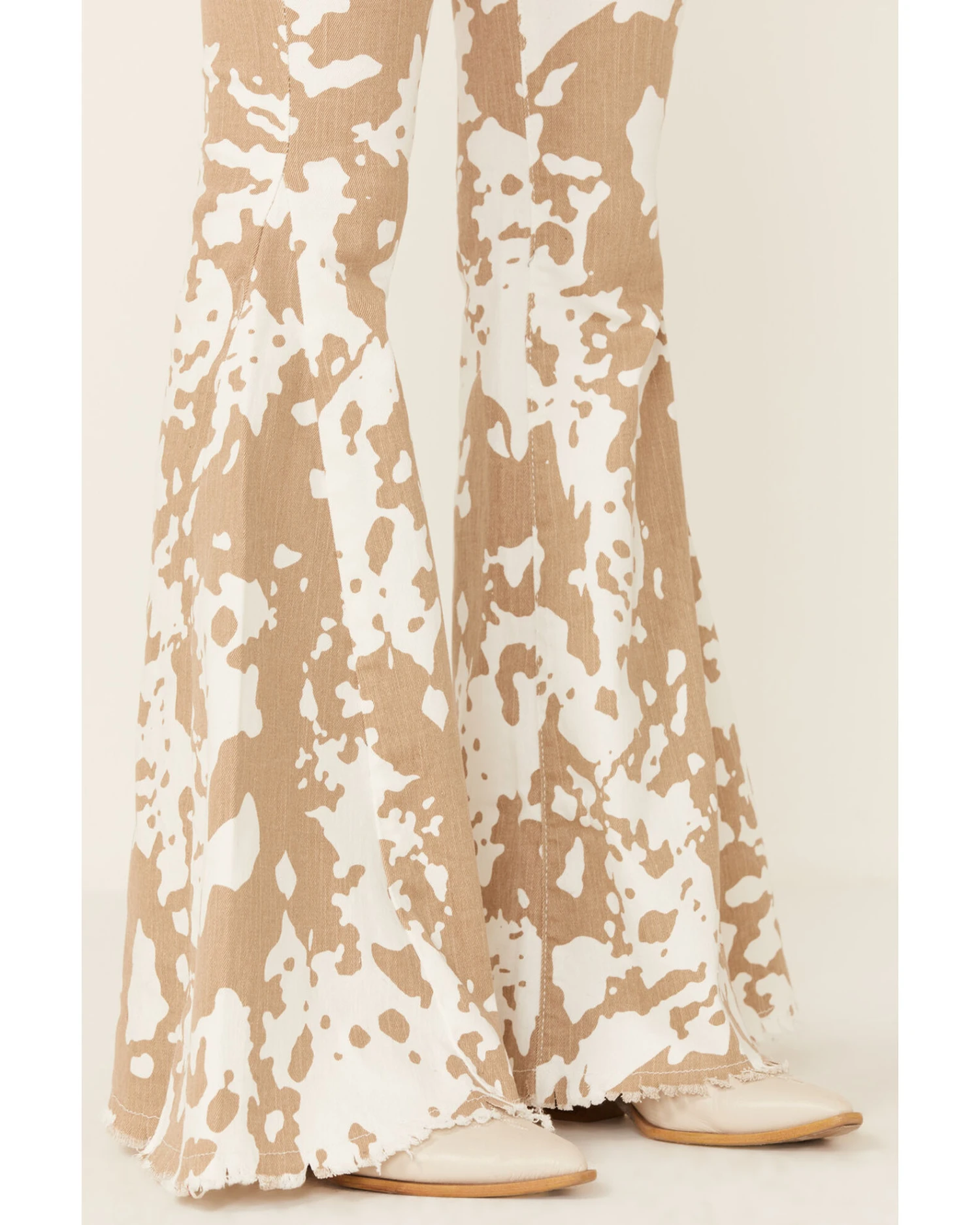 Saints & Hearts Women’s Cow Print High Rise Raw Hem Flare Jeans
