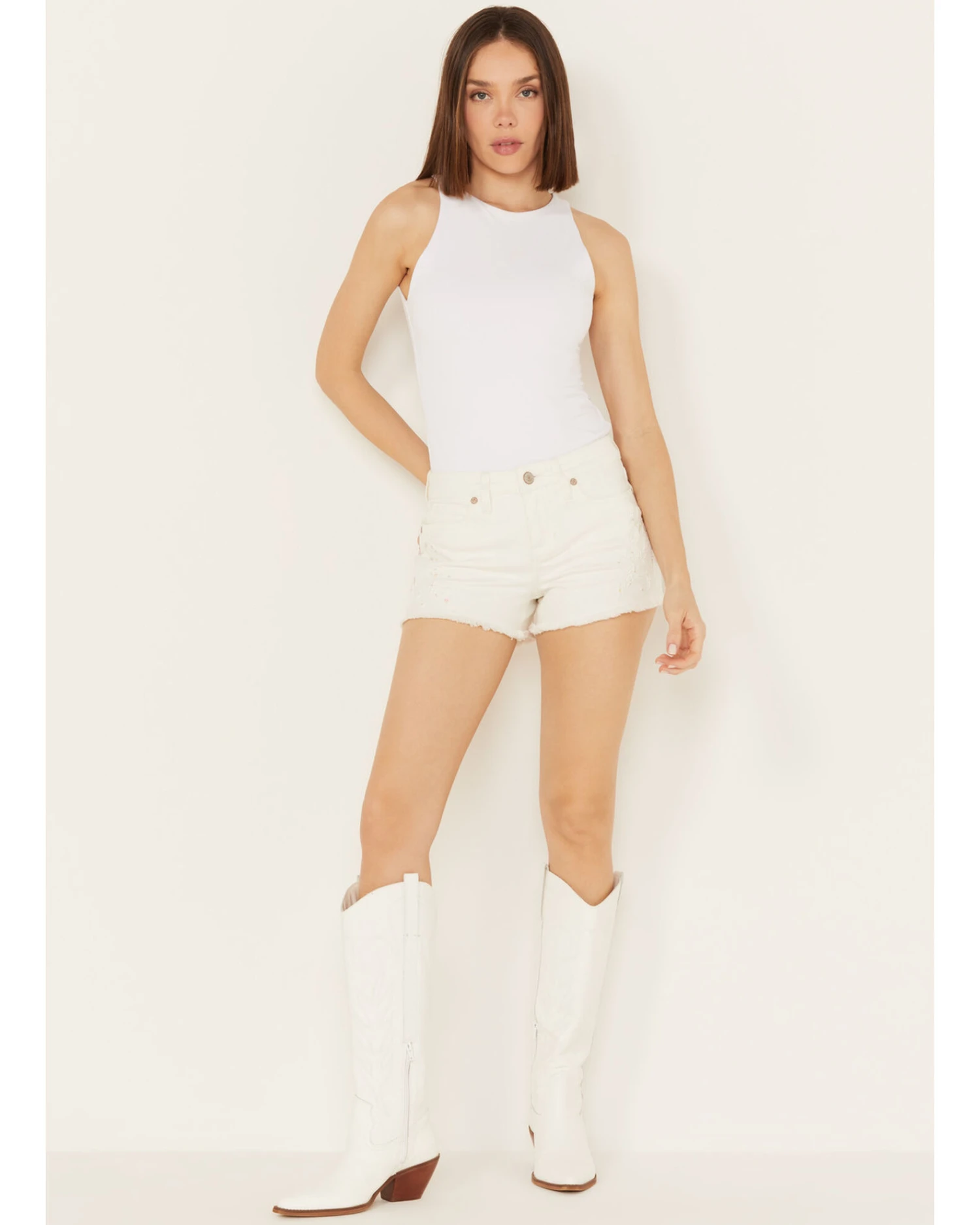 Shyanne Women’s Bridal Mid Rise Lace Denim Shorts
