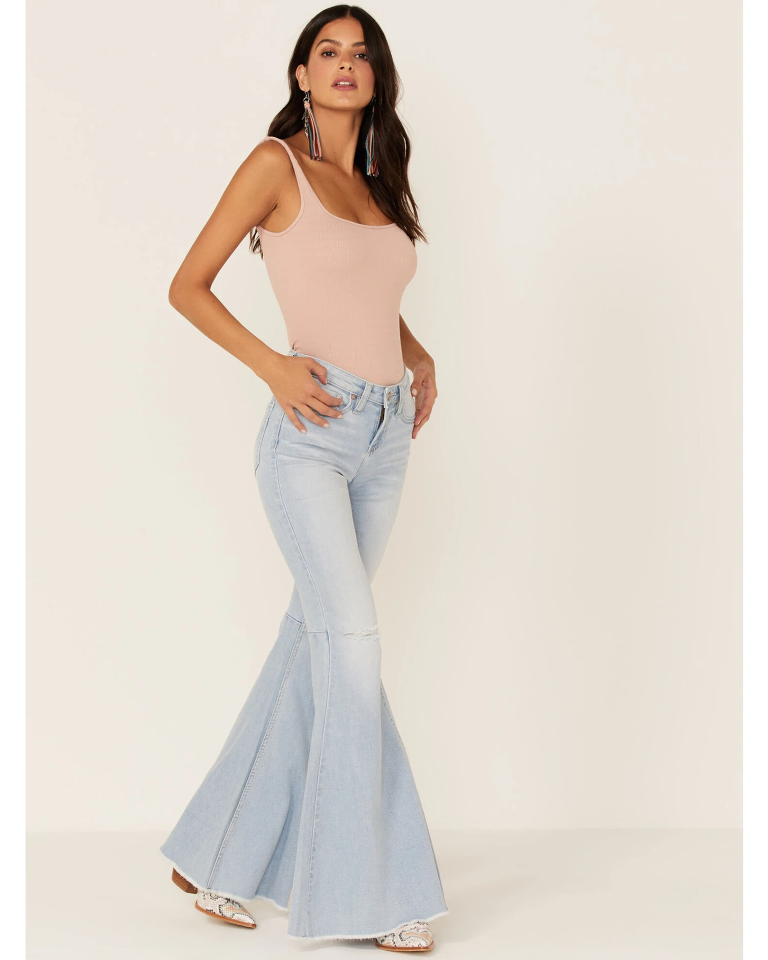 Shyanne Women’s Destructed Knee Super Flare Leg Jeans