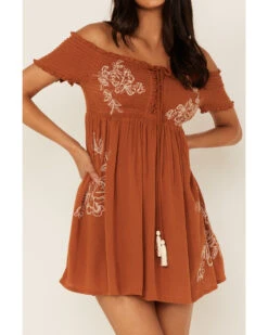 Shyanne Women’s Smocked Off Shoulder Floral Embroidered Mini Dress