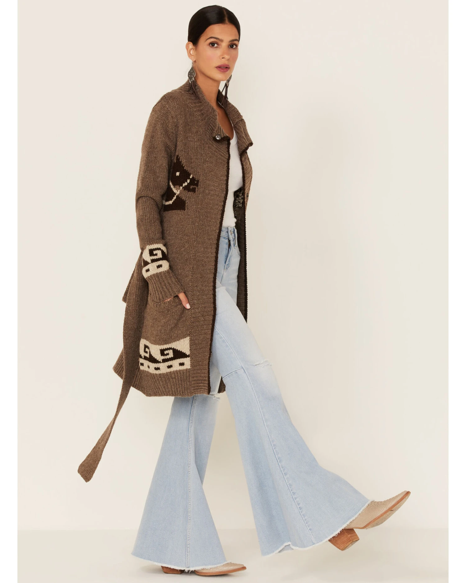 Stetson Women’s Horse Motif Belted Knit Wool Blend Cardigan