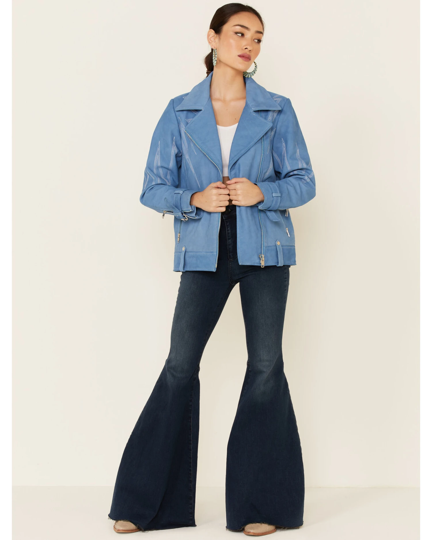 Understated Leather Women’s Sunburst Leather Zip-Front Moto Jacket