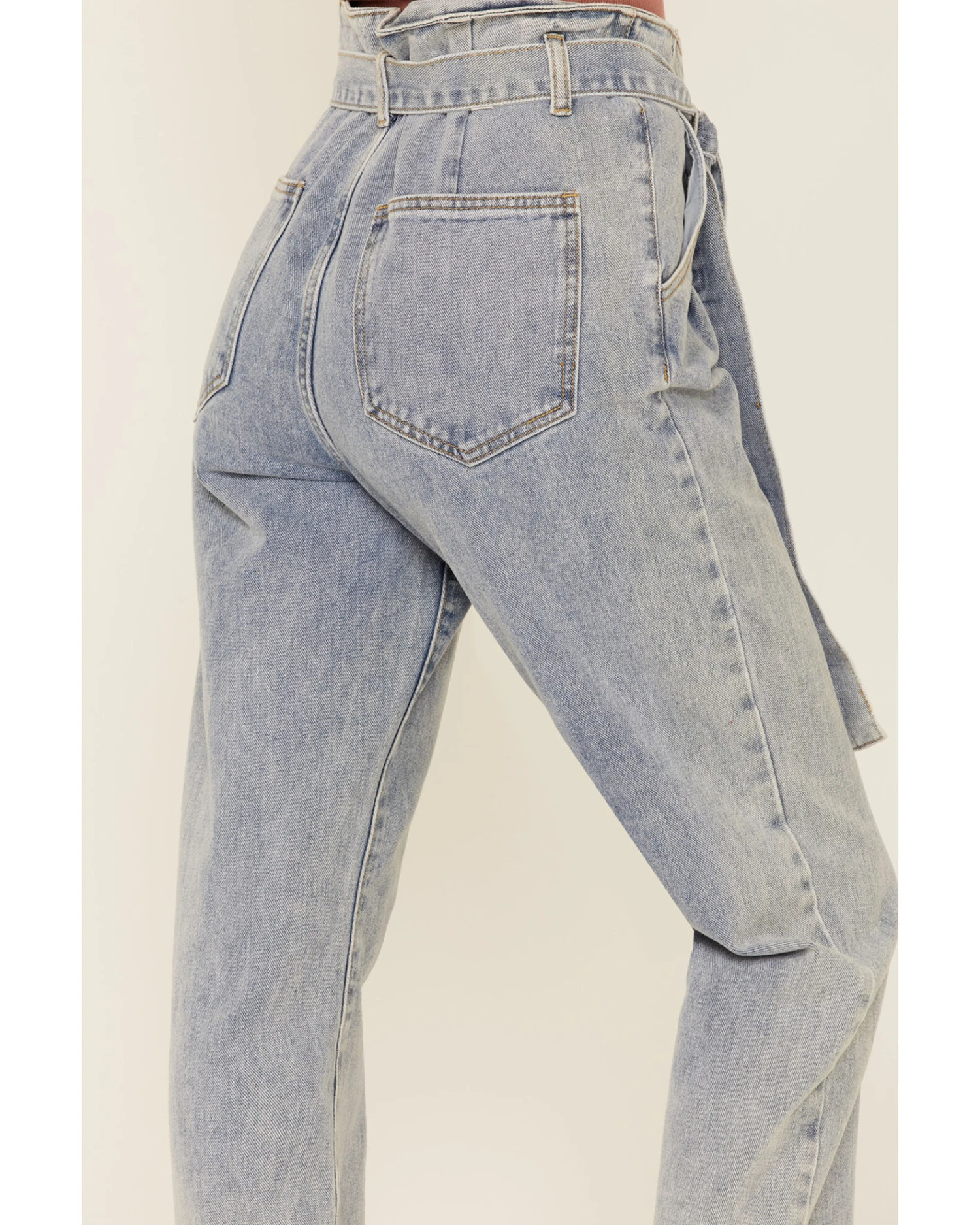 Wishlist Women’s Acid Wash Tie Waist High Rise Jeans