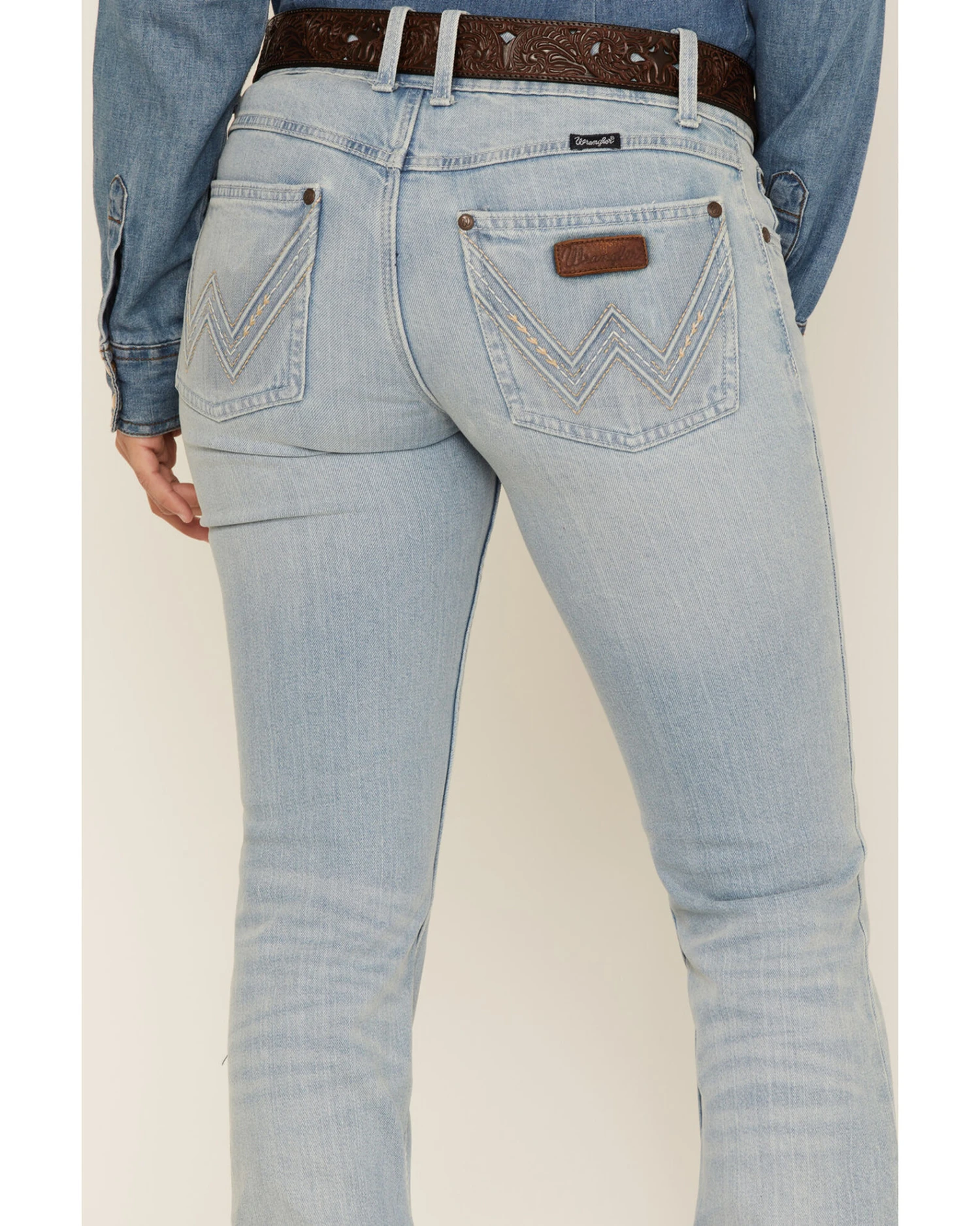 - Five-pocket design with embroidered design on back pockets