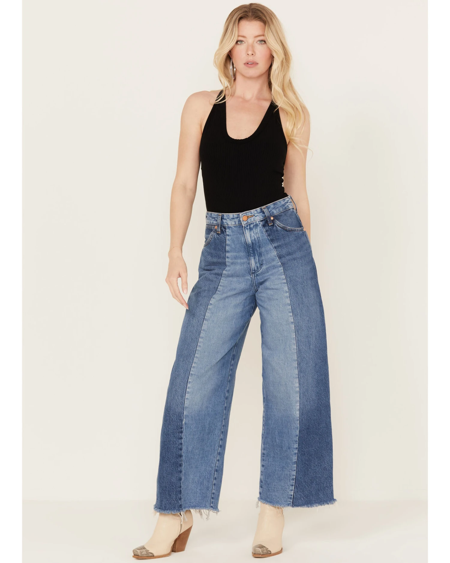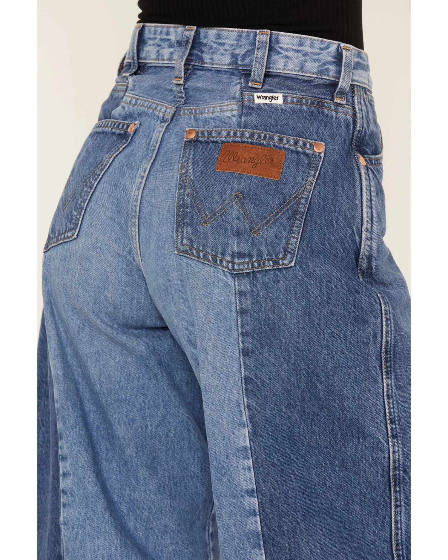 Wrangler Women’s Medium Wash Mid Rise Color Block Together Again Wide Leg Jeans
